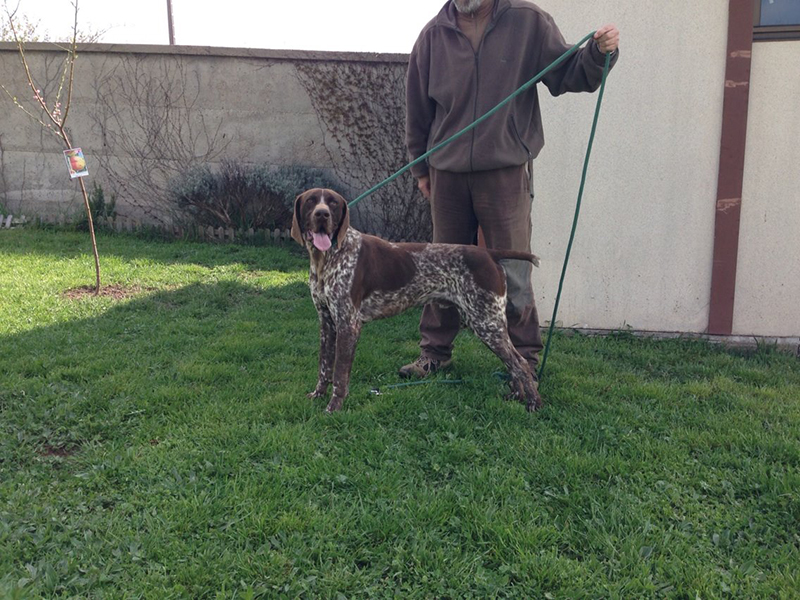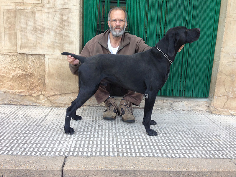 Gran perro, mi ilusón como semental para romper la consanguinidad del sistema de cría. Hermano de Ari (Xito Gordoncillo (Esprit Osterberg x Izana de Abejar) x Elsa von den Donau Wirbeln (Conan Seehof x Sophie Geestmoor)). Cachorro de gran talla y equilibrio. Morfológicamente es muy bueno, buena esencia y en el campo apunta maneras. Nacido en el 2014.