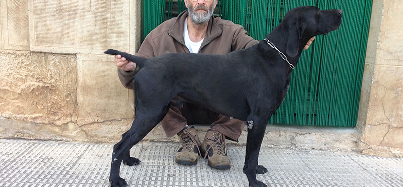 Macho de mi casa, hermano de Ventus , pero de dos camadas diferentes, consecutivas. Gran morfología y mecánica. Gran contacto con caza salvaje, gran muestra. Actualmente se usa como semental reproductor para la 2ª generación del sist. de cría. Cedido en casa de mi amigo Laureano del Castillo. Nacido año 2011.
